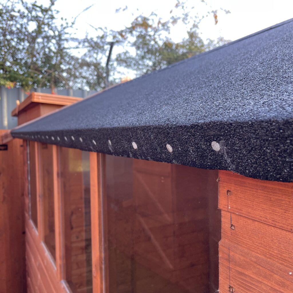 On the Tiger shiplap range, the roof covering has consistently impressed me. It’s the thicker mineral-felt style rather than the brittle, budget felt you sometimes see elsewhere. Over the years I’ve been on show sites where cheap felt has cracked or torn — sometimes within a year — and once felt fails, that’s when you start seeing the problems you don’t want: water getting in, boards staying damp, edges lifting, general deterioration.